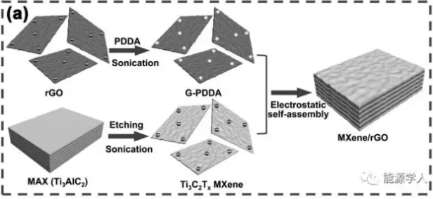 近期,德雷塞爾大學(xué)YuryGogotsi教授等人以帶正電荷的還原氧化石墨烯(rGO)和帶負(fù)電荷的碳化鈦MXene納米片為原材料,通過靜電自組裝法合成出MXene/rGO復(fù)合材料,作為超級電容器電極材料,表現(xiàn)出優(yōu)越的電化學(xué)性能。此成果發(fā)表在國際期刊Adv.Funct.Mater.上。